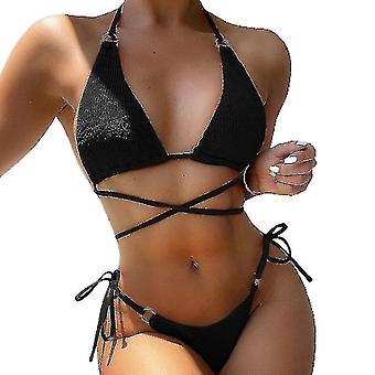 الصلبة اللون بيكيني مجموعة مثير سليم ملابس السباحة غطاء الصدر الصغيرة جمع التفاف الاستحمام بدلة منخفضة الخصر الرباط سبليت ملابس السباحة