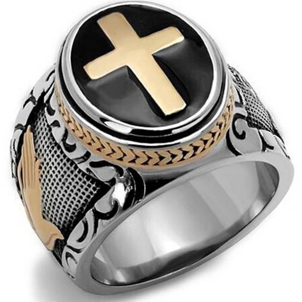 European Crusader Christian Cross Praying Hands Ring Men's Ring Fashion Metal Religious Amulet Accessories Party Jewelry