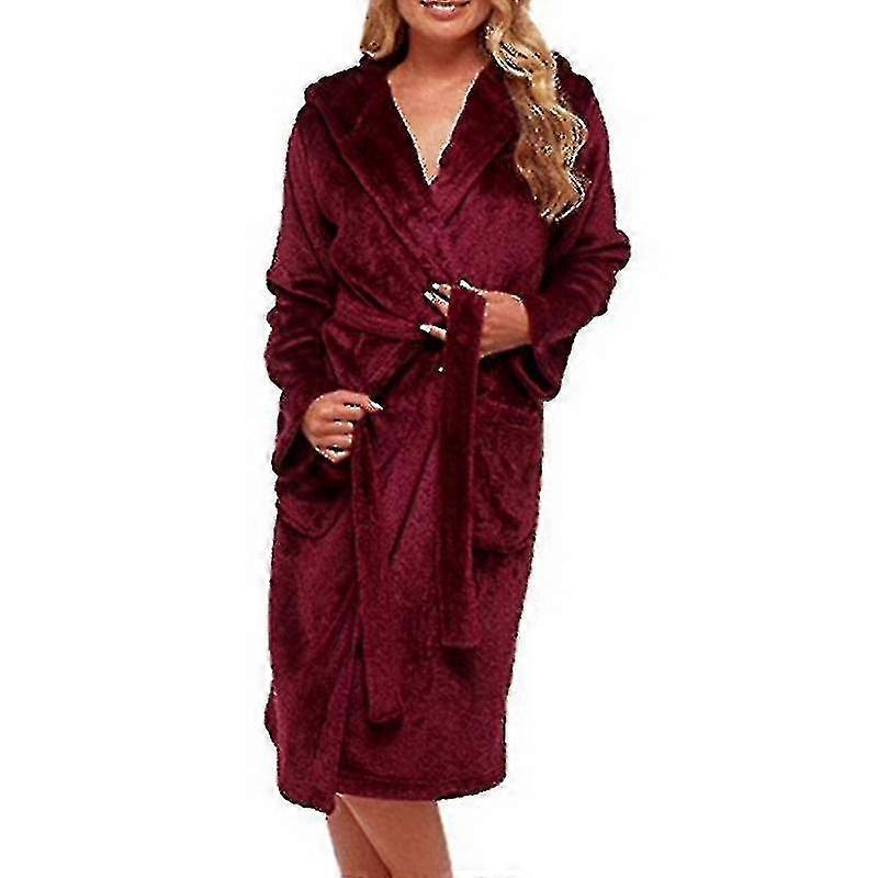 Fleece Bathrobe Women Dressing Gown Hooded Towling Bath Robe Nightwear