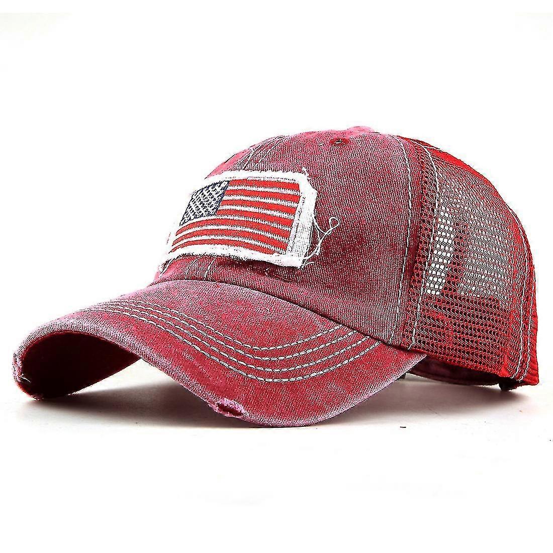Summer Breathable American Flag Denim Hat Trucker Hat Fashion Ladies Pony Tail Cap Baseball Cap Adjustable Hip Hop Hat Golf Cap_y High Quality