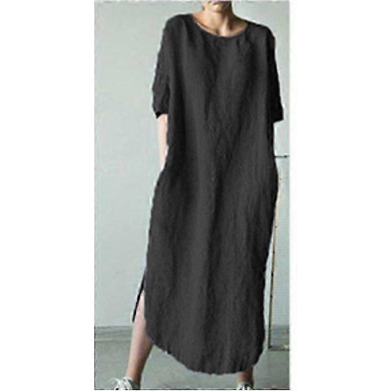 Summer Women's Plus Size Dress Round Neck Half Sleeve Solid Color Side Split Midi Dress