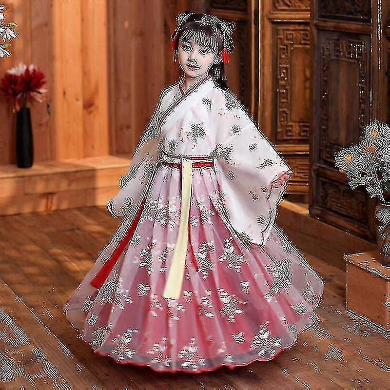 Chinese Silk Robe Costume Girls Children Kimono China Traditional Vintage Ethnic Antique Dress Dance Costume Cosplay Hanfu Set/YY