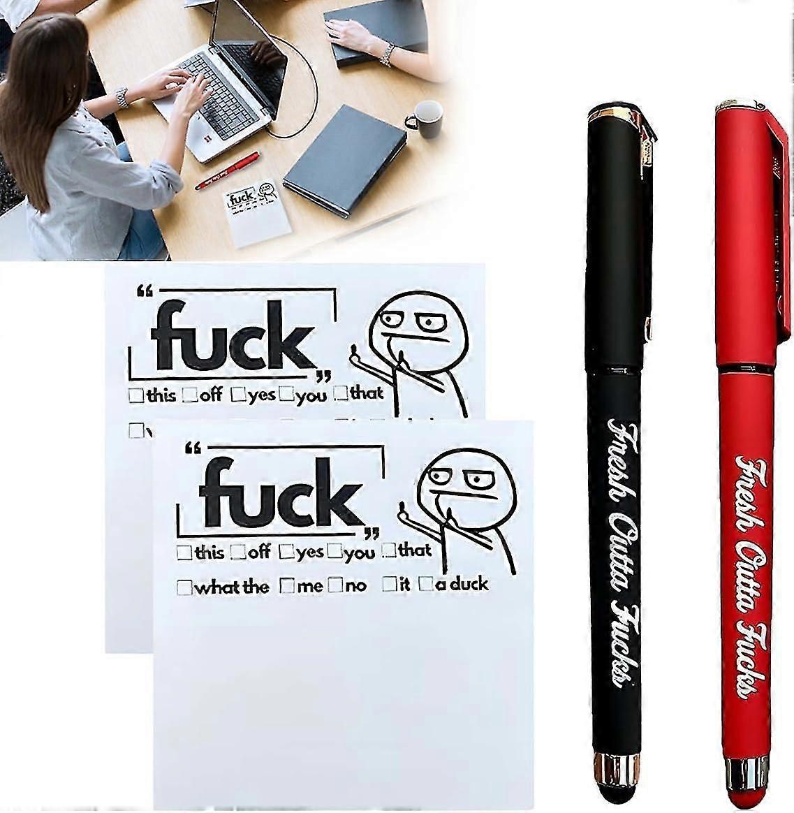 Fresh Outta Fucks Pad And Pen, Snarky Novelty Fresh Outta Fucks Pen Set, Post It Notes, Snarky Novelty Office Supplies