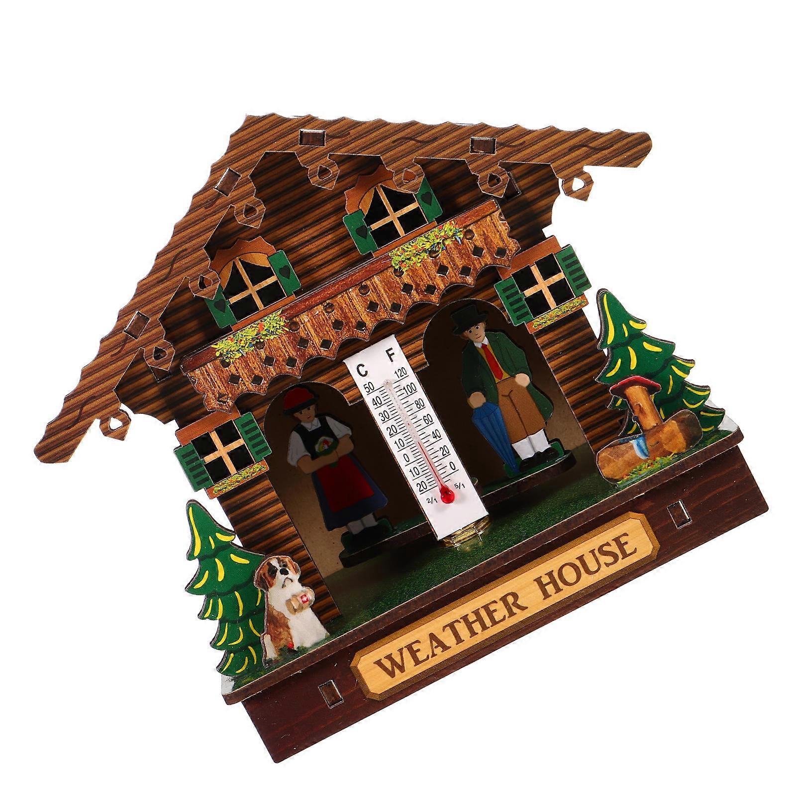 Weather House Wooden Barometer Wall Mounted House Hygrometer Wall Weather House with Temperature and Humidity for Home Indoor Wall Decoration Style B