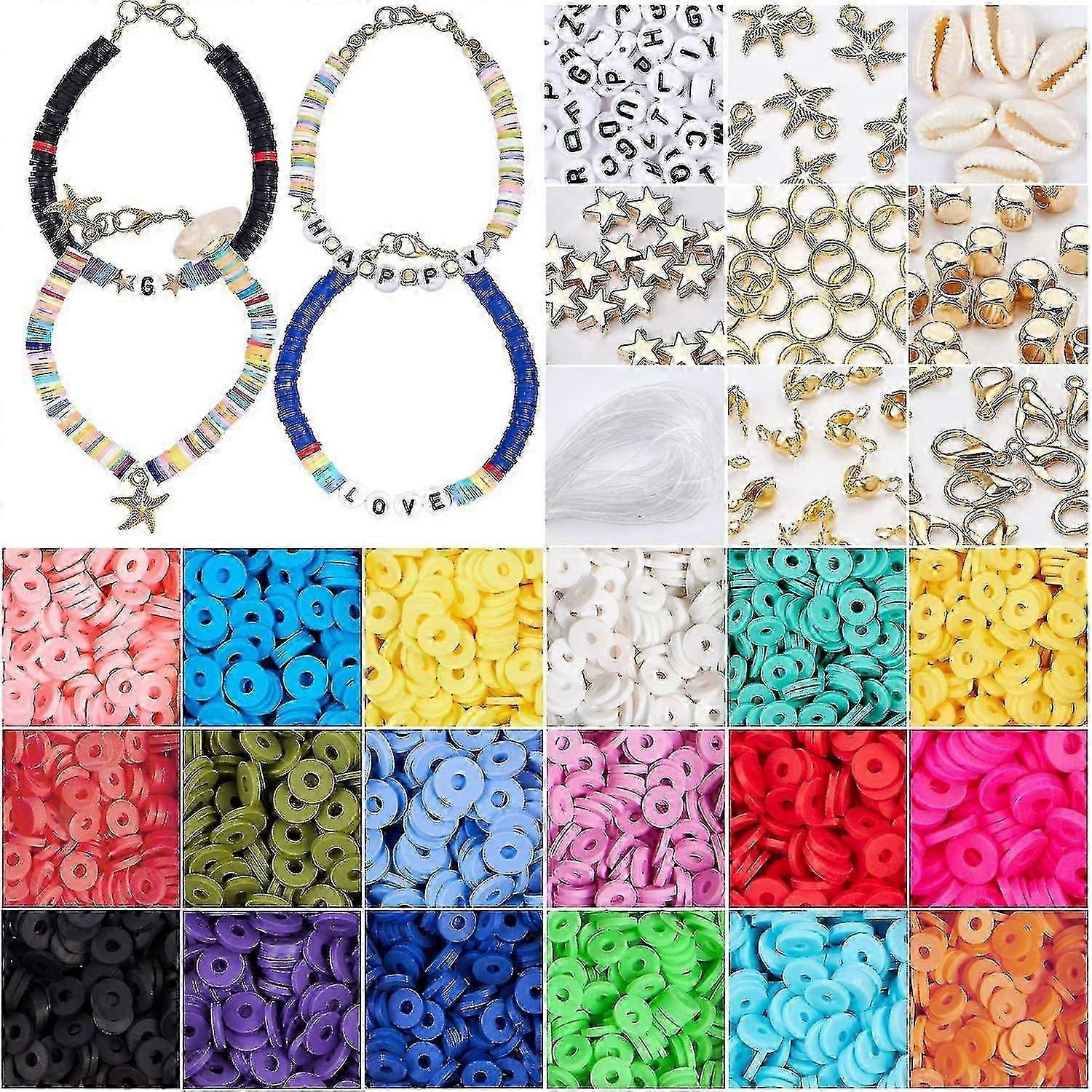 Clay Beads For Jewelry Making Bracelet Kit, Clay Beads With Pendant For Bracelets Necklace Earring Diy A