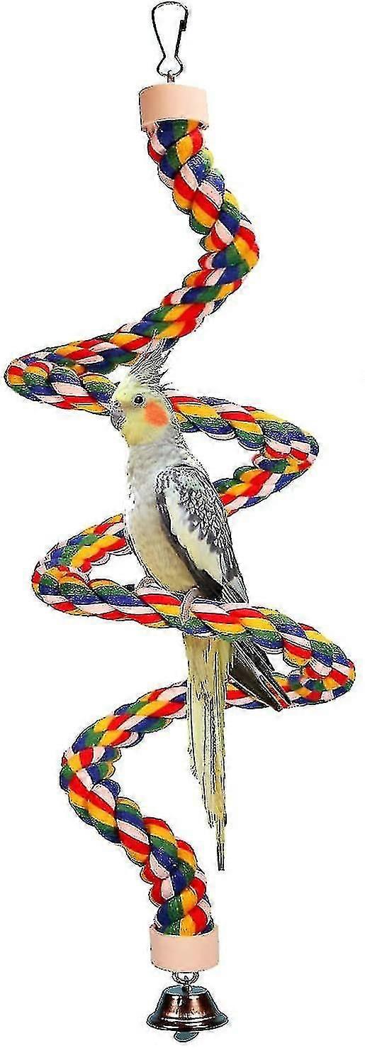 Bird Rope Perch Comfy Cotton Spiral Bungee Swing Climbing Standing Ladder For Bird Cage Parrot Toy With Bell - Aespa