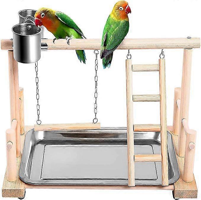 Bird Playgroud Parrots Wood Perch Playstand Stand Playpen Ladder with Feeder Seed Cups, Bird Ropes, Toys Exercise Play for Cockatiels, Conures, Parake