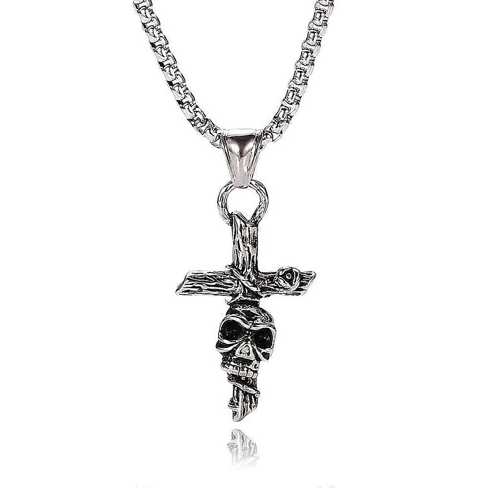 Dark Punk Death Skull Cross Pendant Necklace Jewelry Personality Hip Hop Rock Metal Pendants Neck Chain Fashion Accessories