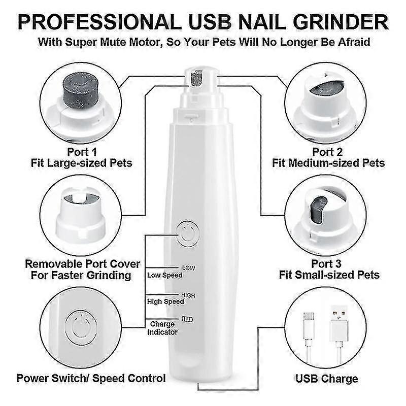 Brand New Professional Electric Dog Nail Grinder Portable Usb Rechargeable Pet Paw Painless Grooming Trimming For Pets Claw Nail Clipper