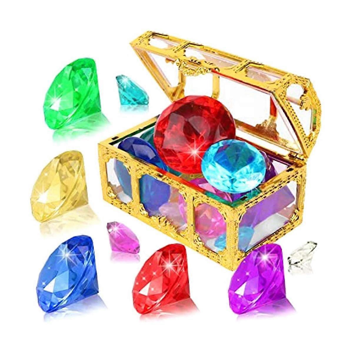 Diving Gem Pool Toys Colorful Diamond Gem with Treasure Pirate Chest Box Summer Underwater Gemstone