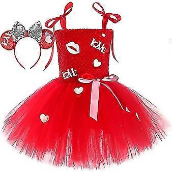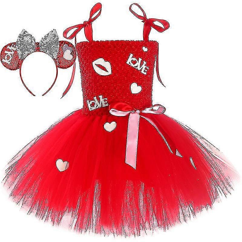 Red Girls Valentines Day Tutu Dress Minnie Headband Love Heart Princess Dress Baby Birthday Gift Kids Christmas New Year Costume