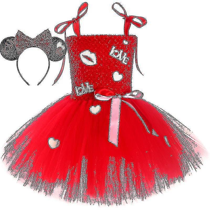 Red Girls Valentines Day Tutu Dress Minnie Headband Love Heart Princess Dress Baby Birthday Gift Kids Christmas New Year Costume