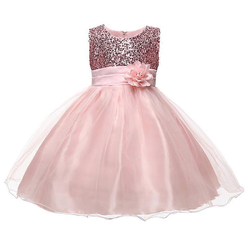 Girls Summer Sleeveless Sequined Princess Dresses With Flower Bow