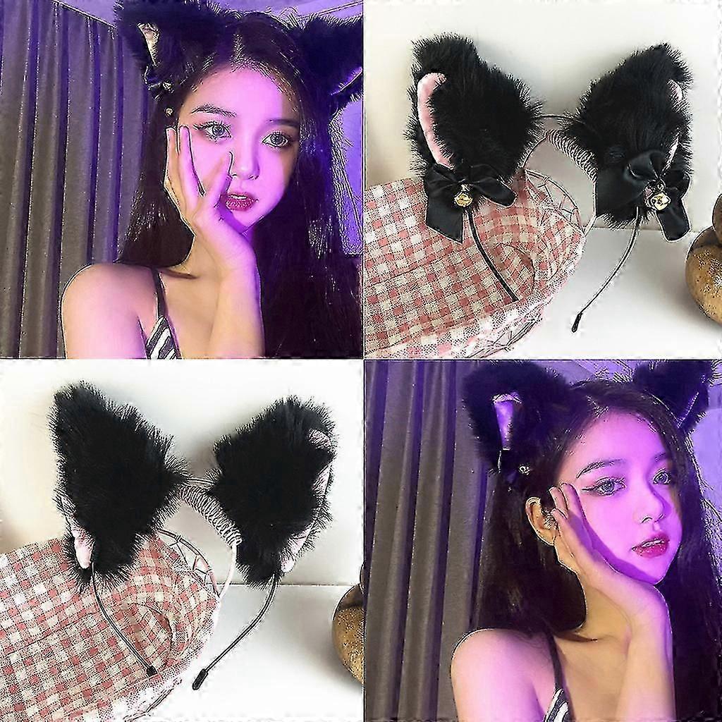 Girls Cat Ears Headband Choker Collar Set With Bells For Party Halloween
