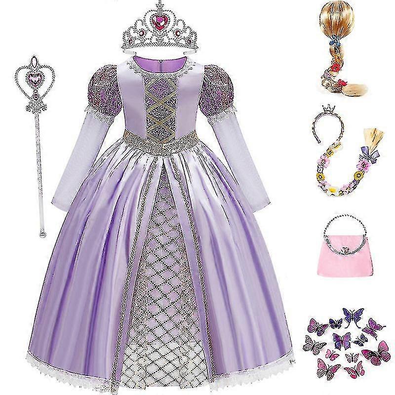 Girls Dress Wig Handbag Tangled Rapunzel Princess Dress Skirt Halloween Party Cosplay Costume
