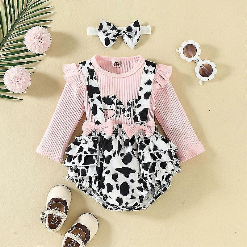 Girls Suspender Outfits Baggy Cute Dresses Set Newborn Cow Print 3pcs Outfit Suit