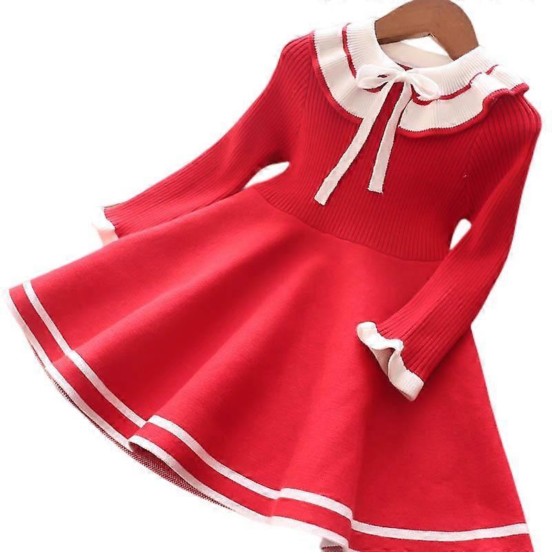 Girls Warm Sweater Dress Ruffle Collar Long Sleeve Pullover Winter Children