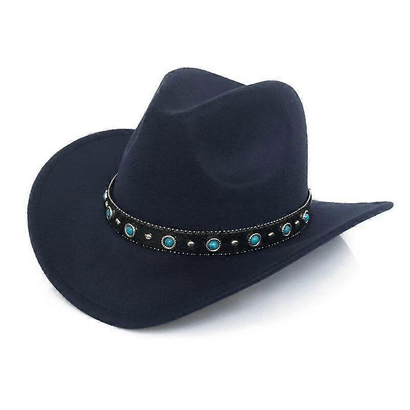 Turquoise stone band cowboy hat for women men jazz hat felt hat black wide brim fashion hat western cowboy hat