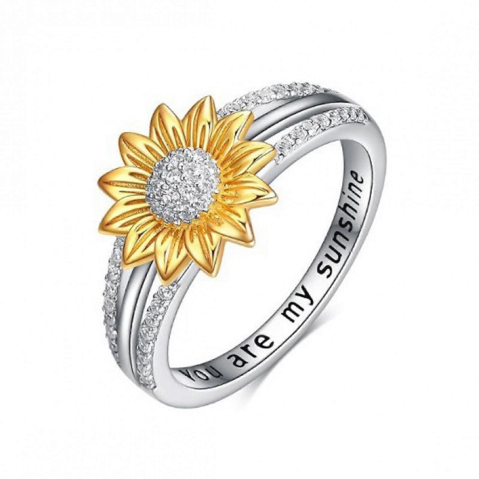 Sterling Silver You Are My Sunshine Sunflower Personalized Ring with Cubic Zirconia Ring Gift Mother's Day Gift -GSLA