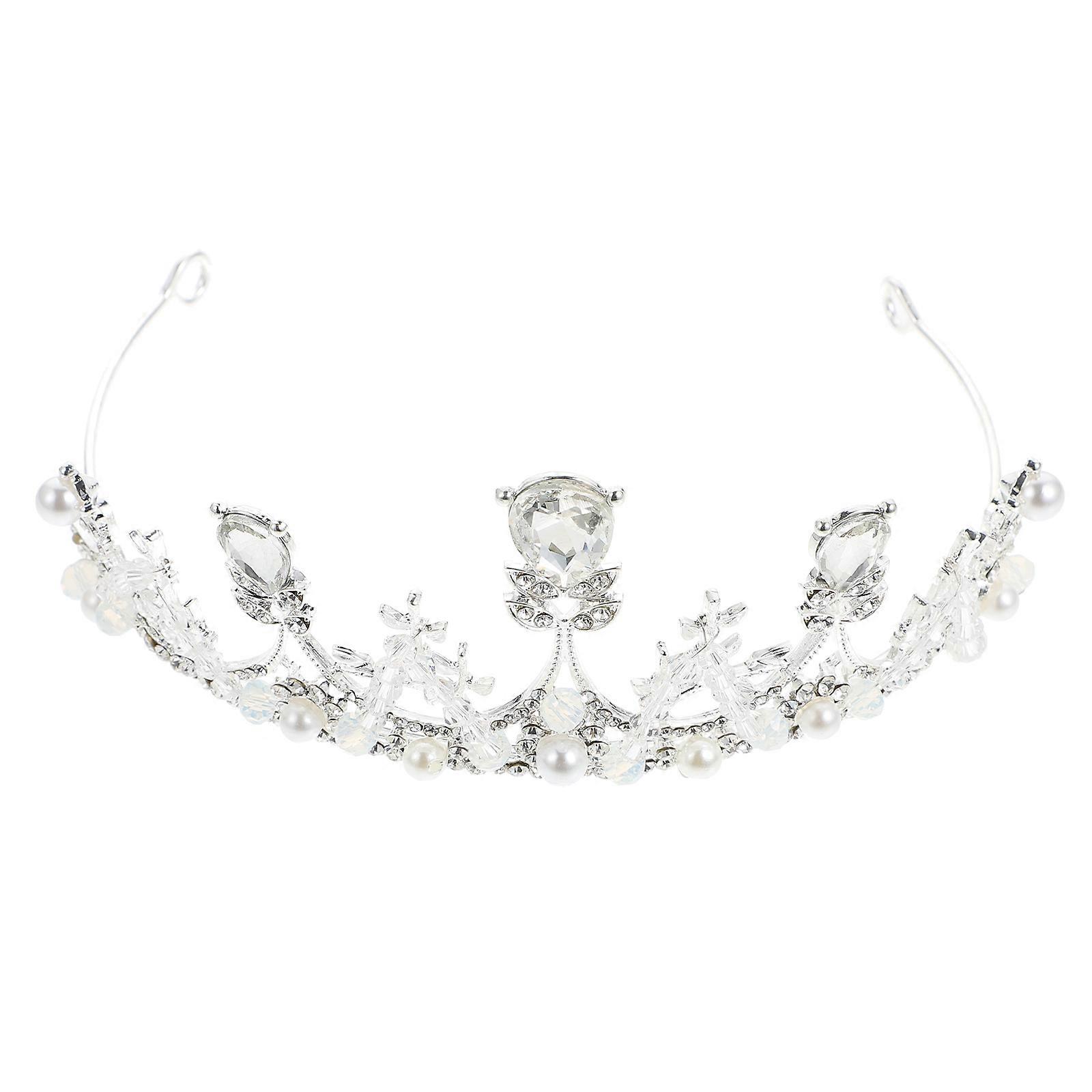 Silver Baroque Style Girl Rhinestone Crown Tiara for Decor Made of Durable Alloy 1Pc
