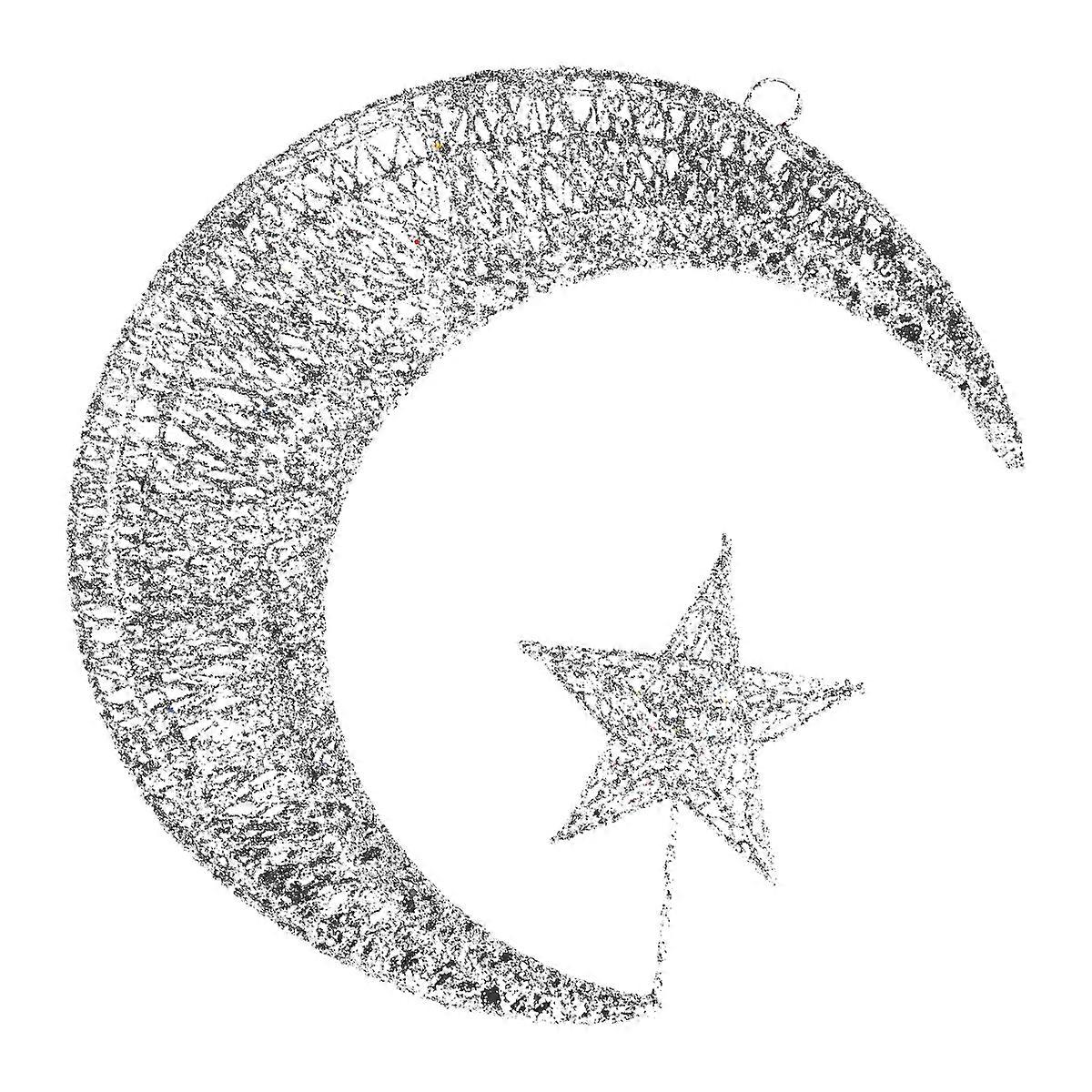 Silver Iron Art Moon Star Hanging Pendant Glitter Christmas Ornament for Garden, Porch, Patio, Wall Decor, Parties & Home Festive Decoration