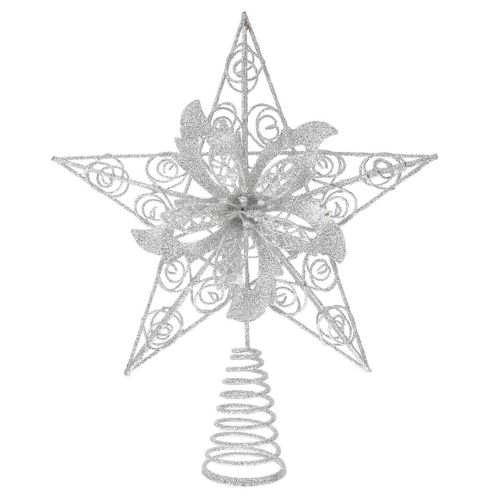 Silver Iron Christmas Tree Topper Star Lightweight Xmas Ornament for Home, Hotel, Mall & Party Decoration Festive Adornment with Bright Color and