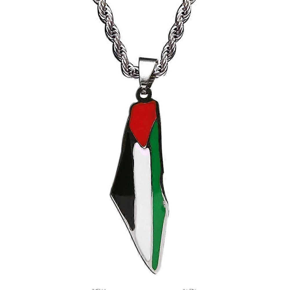 Silver Gold Plated Palestine Flag Map Necklace Pendant 60cm Chain Palestinian