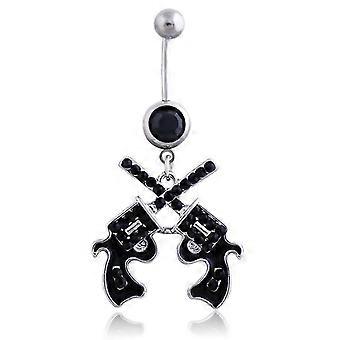 الفولاذ المقاوم للصدأ الزركون بندقية مزدوجة زر البطن ثقب السرة ثقب مسدس السرة الدائري Ombligo خاتم الجسم والمجوهرات