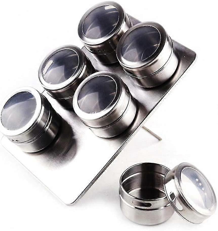 Stainless Steel Magnetic Spice Jars, 6 Pc Spice Tin Set With Rack, Portable