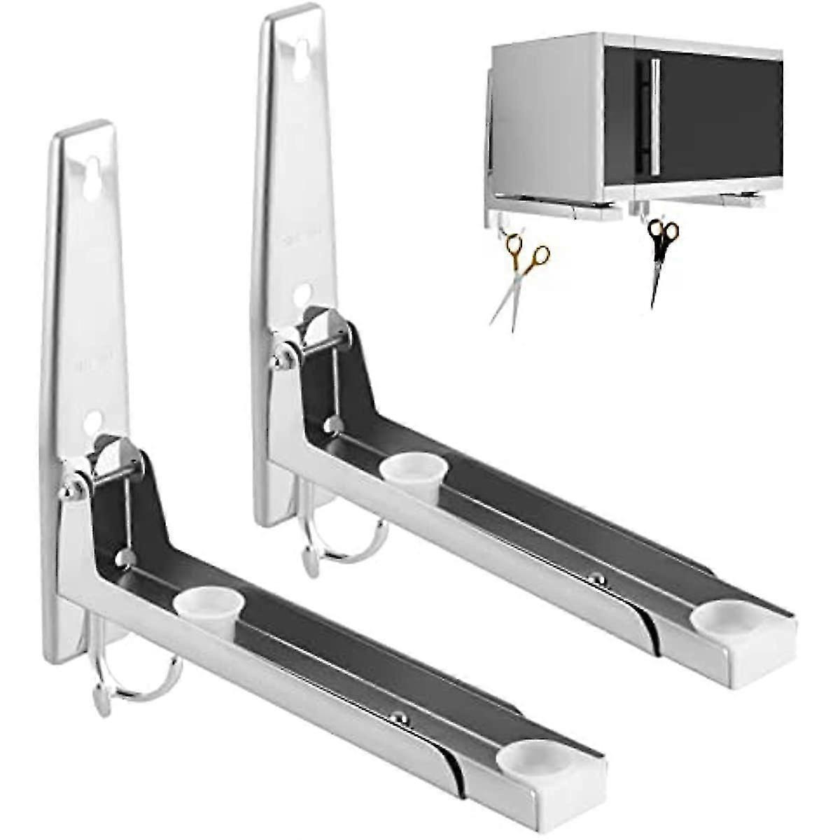 Stainless Steel Microwave Holder Wall Mount Shelf Microwave Holder With Hooks And Telescopic Arms For Microwave Foldable Microwave Stand Holder For Mi