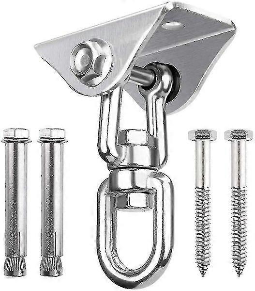 Stainless Steel Ceiling Hook For Hammock, Porch Seat,swing,yoga For indoor and outdoor use. Perfect for hanging a chair swing, porch swing, rocking chair or punch bag, or for hanging another heavy object from an overhead bracket.Corrosion-resistance, high degree of hardness: 304 stainless steel rings made from high-quality raw materials. No rust, corrosion-resistance, high degree of hardness and non-toxic for the environment. Suitable for any location.Easy to install: We have pre-drilled two holes for screwing on to wooden beams or concrete. Includes 2 concrete anchors and 2 hex screws, and a unique one-piece design, and can be installed in minutes.360 rotation design: The innovative design makes it more flexible so it can be used in more ways. For example, playgrounds, swings, porch swings or hammock swings.What you will receive: swivel hanger with 2 concrete anchors and 2 hex screws.