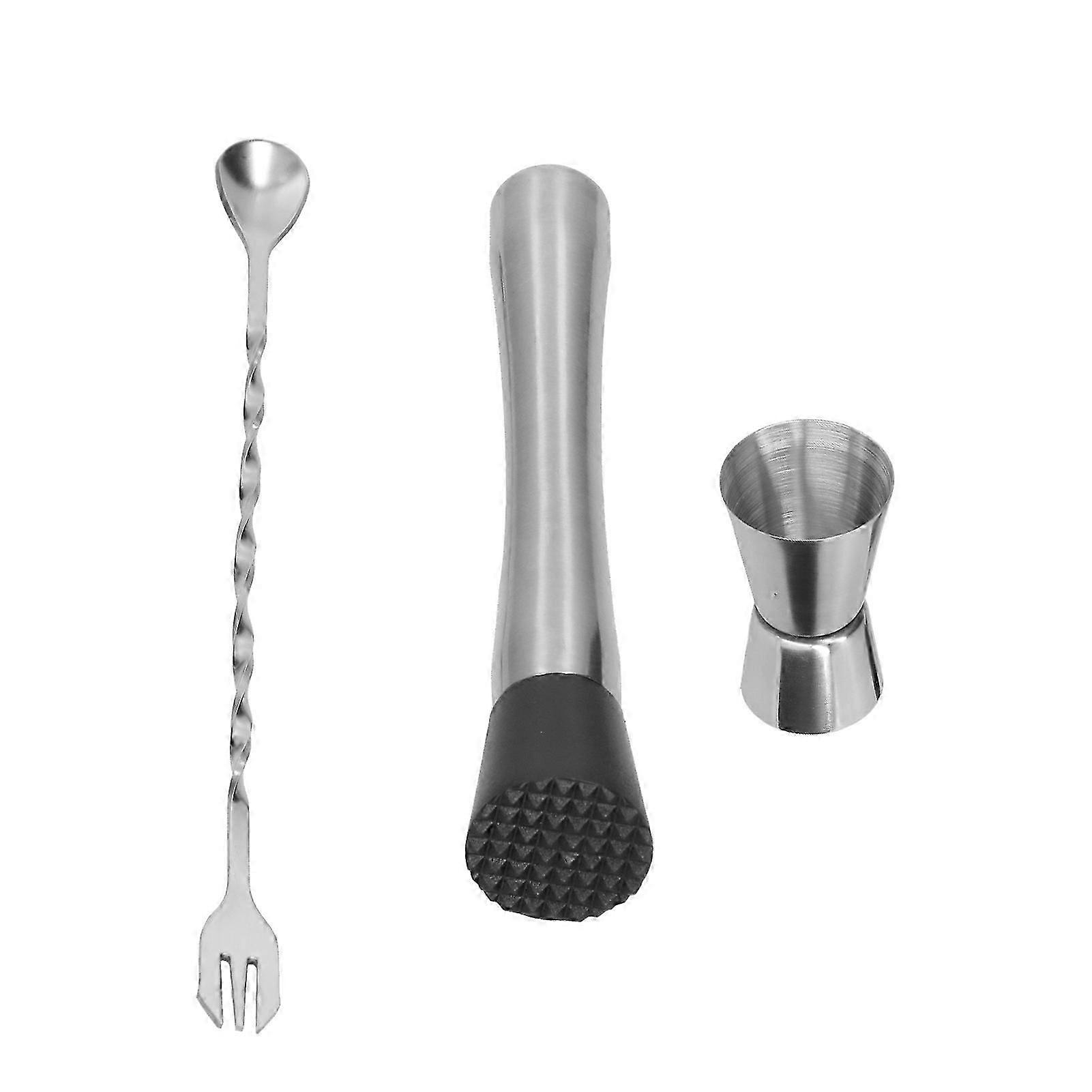 Stainless Steel Cocktail Jigger Muddler Stirring Spoon Set Bar Bartender Accessory