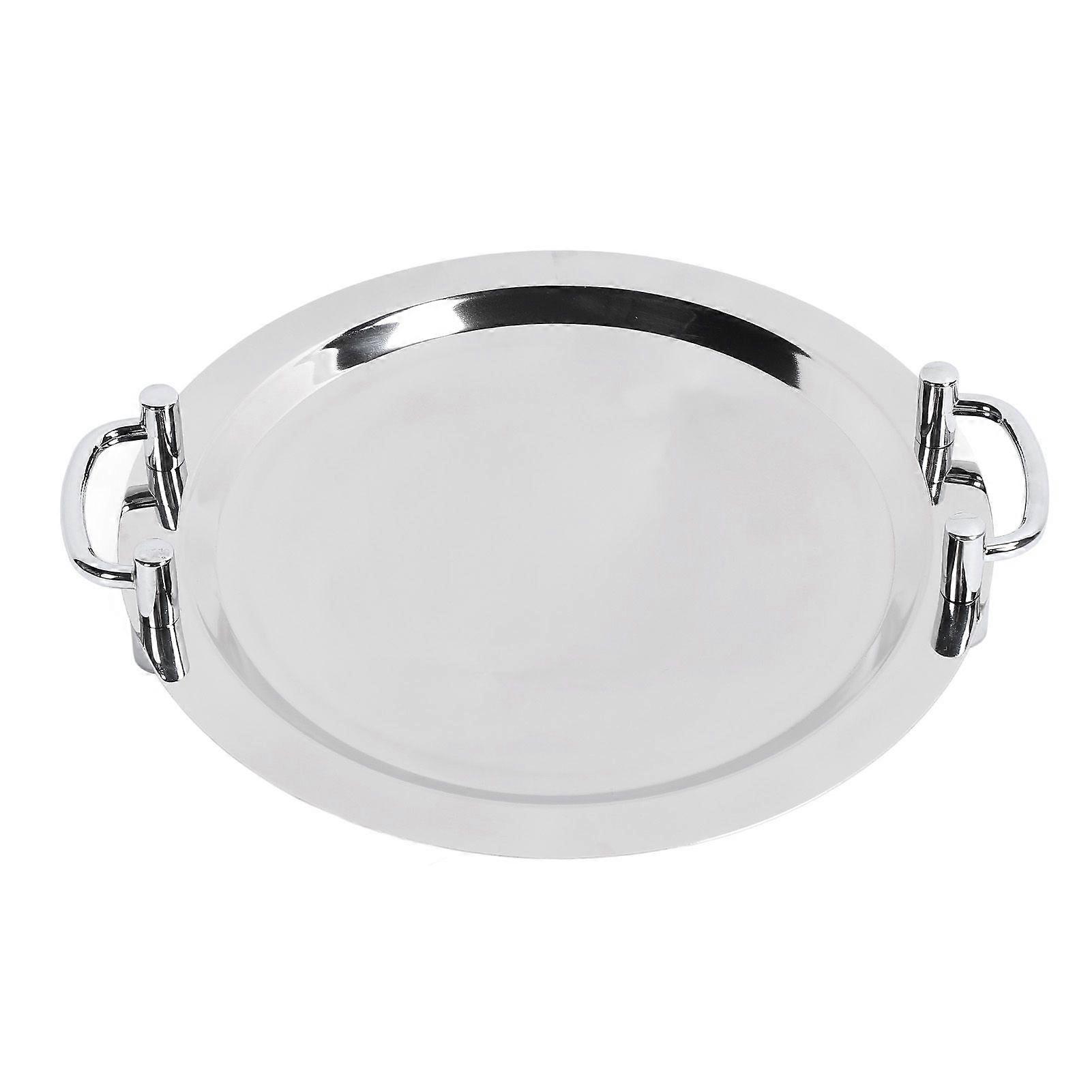 Stainless Steel Buffet Plate Bright Mirror Finish Serving Tray with Handle for Hotel Restaurant Banquet Circular (Diameter 40cm/15.75in)