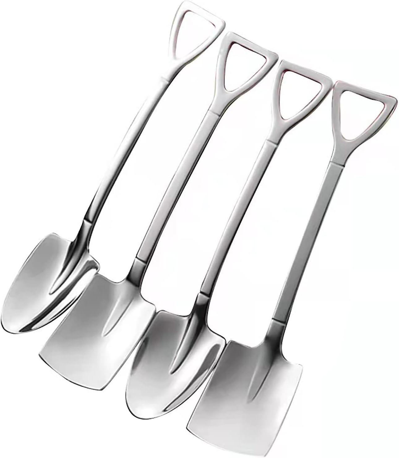 Stainless Steel Shovel Shape Spoon Pointed Spoon Coffee Tea Sugar Stirring Spoon Cake Dessert Spoon for Party(4pcs, silver)