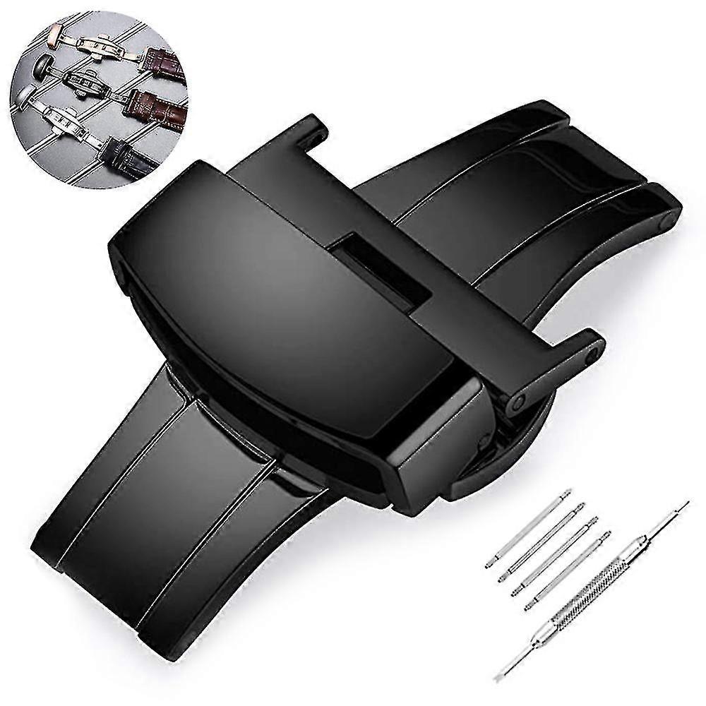 Stainless Steel Deployment Clasp Buckle Fasten Black Silver Rose Gold Watchband Clasp Color & Width (18mm,20mm ) 18mm Black