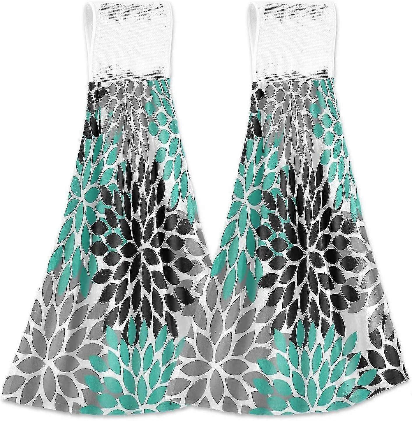 Turquoise Dahlia Flower Hanging Kitchen Towels 2-Piece Set Dish Cloth Gift