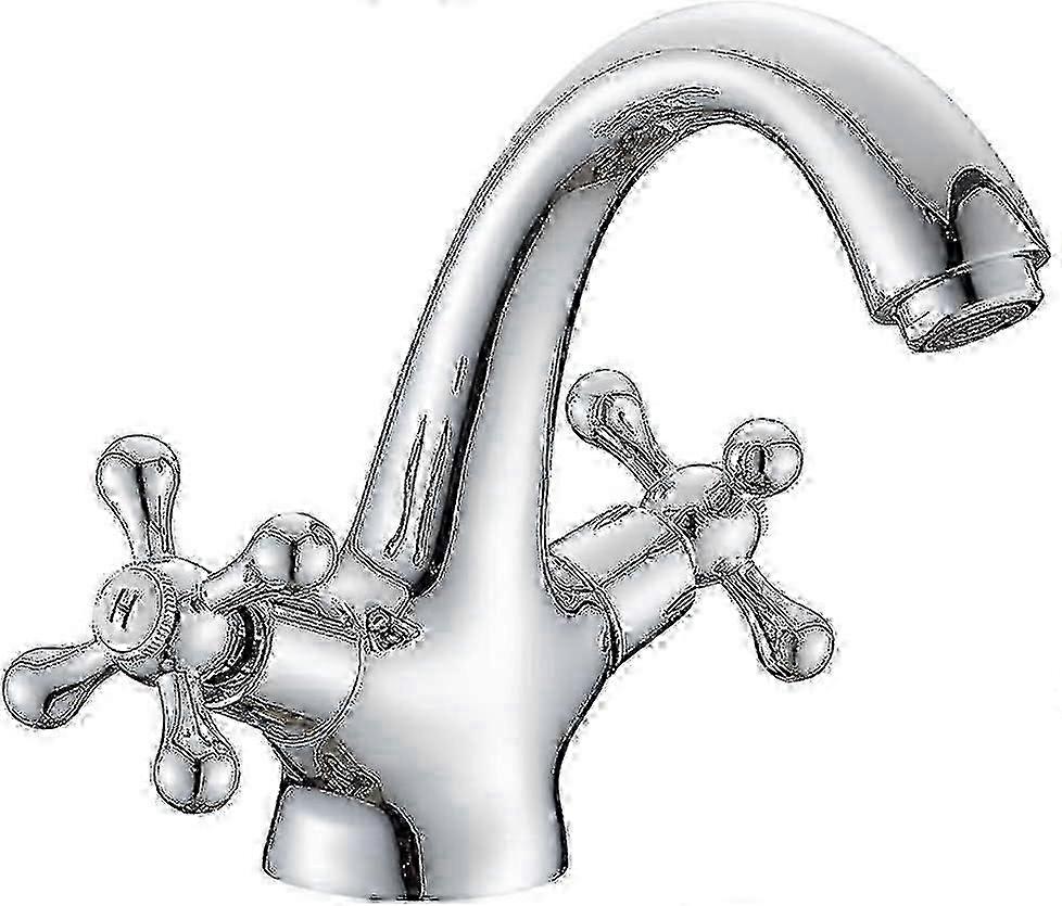 Victorian Monobloc Basin Mixer Tap, Vintage Chrome Dual Handle Bathroom Faucet