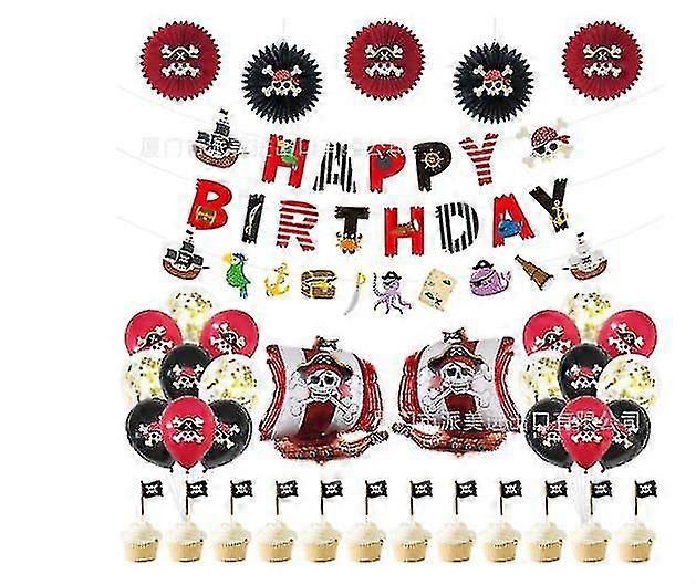 Pirate Theme Birthday Party Decoration Set Supplies Pull Flag Latex Balloon Cake Insert Flag Pirate Paper Fan