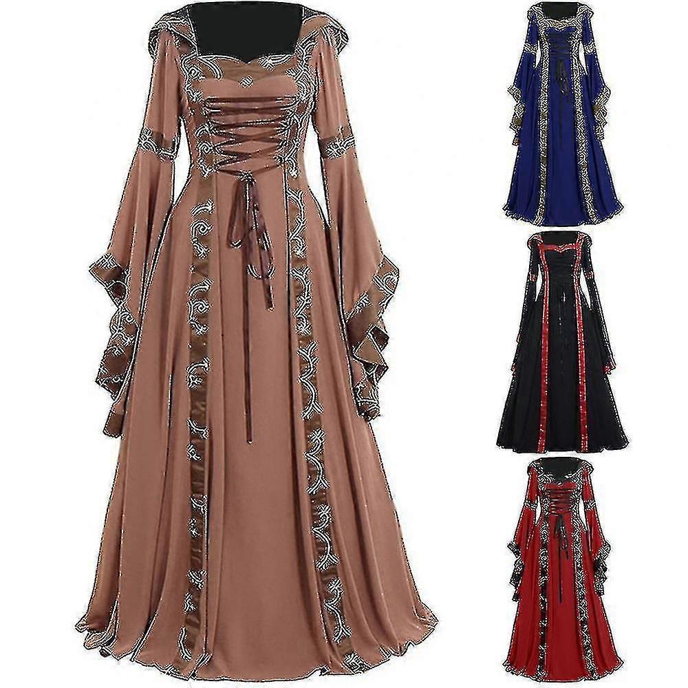Medieval Dress Women Lace Up Long Sleeve Floor Length Medieval Dress Halloween Costume