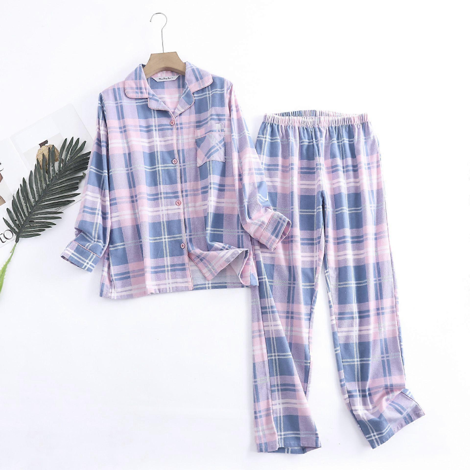Cotton Flannel Trouser Pajamas Suit for Home Wear Simple Printed Loose Autumn and Winter Long Sleeve Pant Pyjamas Women Sets
