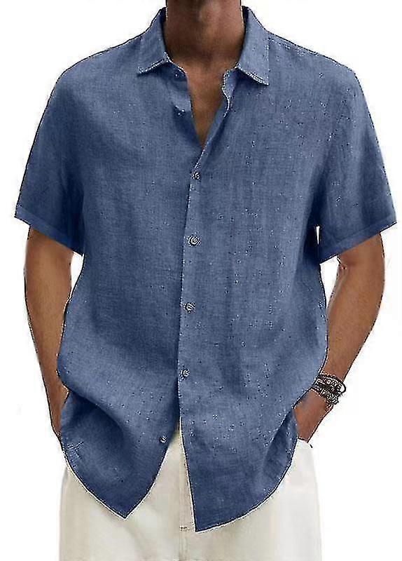 Cotton Linen Blouse Summer Men Turn Down Collar Short Sleeve Button Loose Blouse Tops Oversized S-5xl