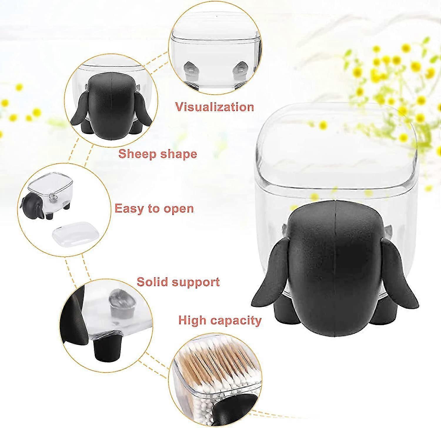 Cotton Swab Holder Sheep Shaped Toothpick Cotton Ball Dispenser Organizer Container With Cover,black