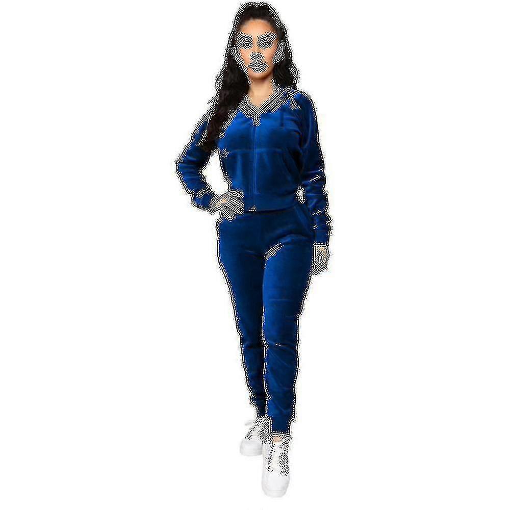 Velour Tracksuit Set Womens Sweatshirt Full Zip Hoodie Sweatsuit-ZZY