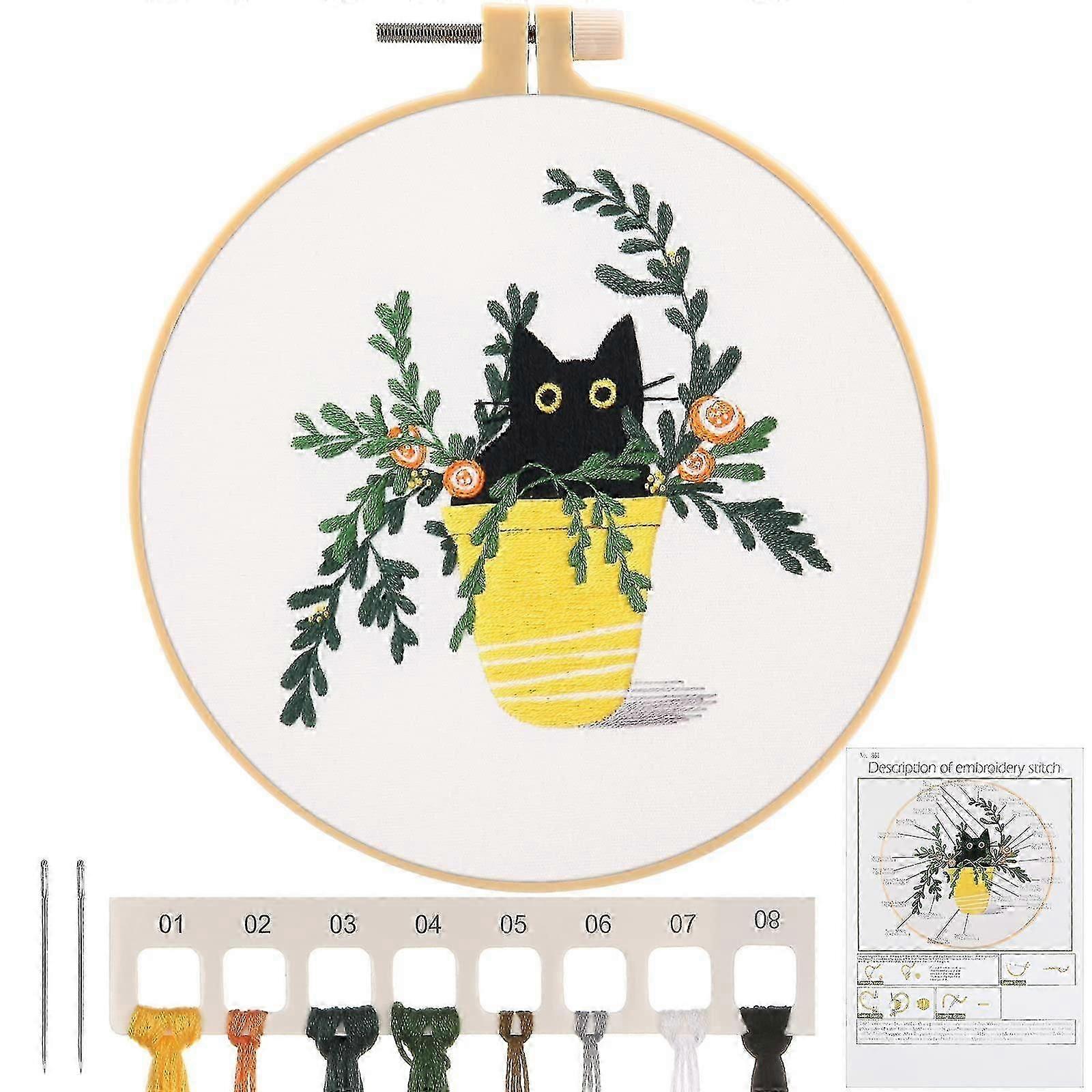 Cat Embroidery Cross Stitch Stamped Kit, DIY Embroidery Starter Kit Handmade Sewing Craft for Adults Beginner Stitch Starter