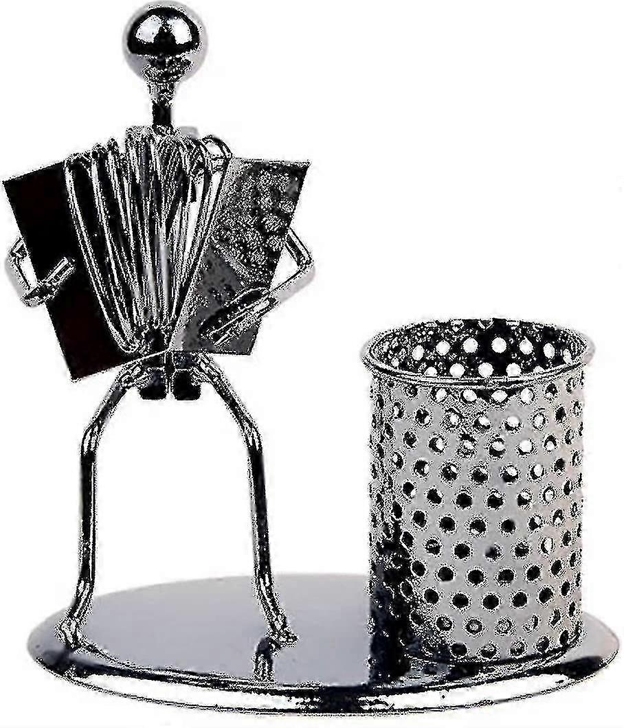 Pen Container Holder Pencil Cup Iron Art Music Figure~home Office Desk Decor Gift Perfect Father's Day Gift(c76 Accordion)