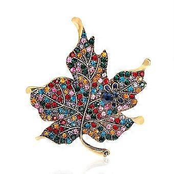 Maple Leaf Brooch Pin For Women Girl Men Color Rhinestone Crystal Retro Elegant Brooch Silk Scarf Bu