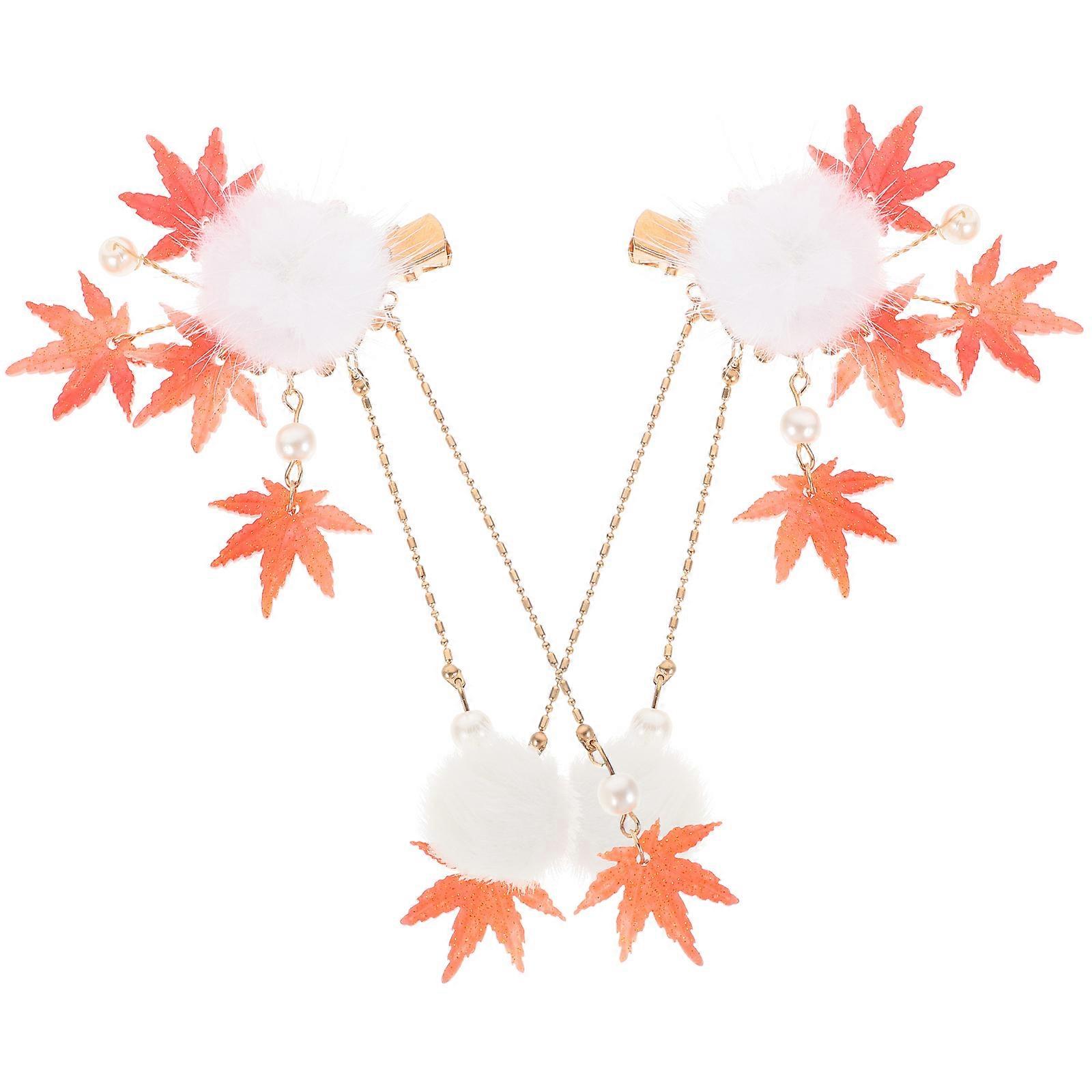Maple Leaf Tassel Chain Wool Ball Metal Hair Clips for Teens – Stylish Decorative Hair Accessories