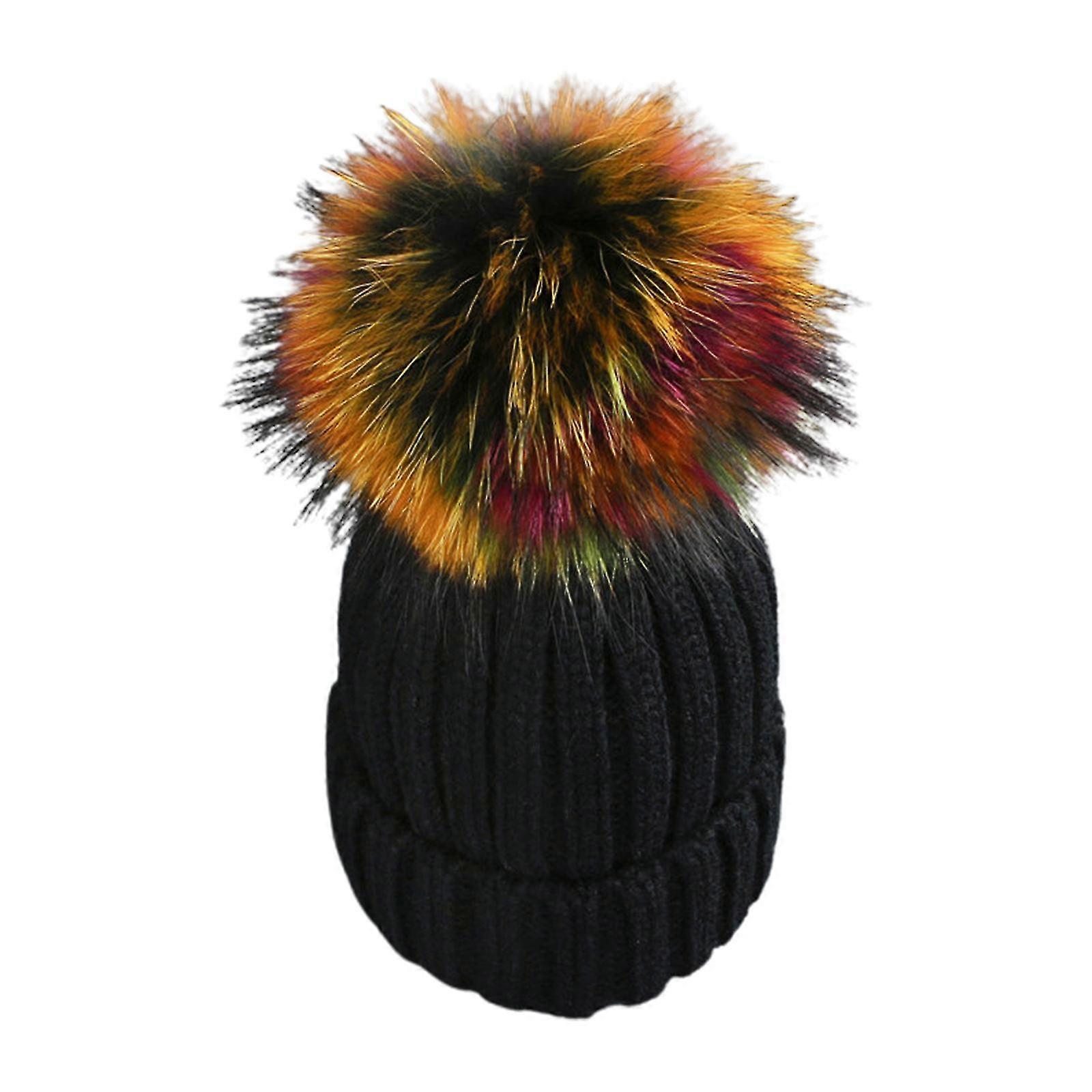 Adult Kids Winter Ribbed Knitted Beanie Hat With Detachable Colorful Pom Pom Windproof Ski Cuffed Skull Cap Ear Warmer