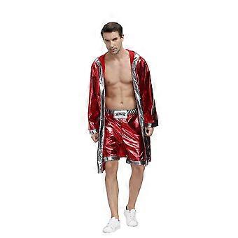 Adults Red Boxer Uniform Sexy Boxing Costumes Carnival Halloween Party Couple Cosplay Clothes Hooded Cloak Robe Shorts Set