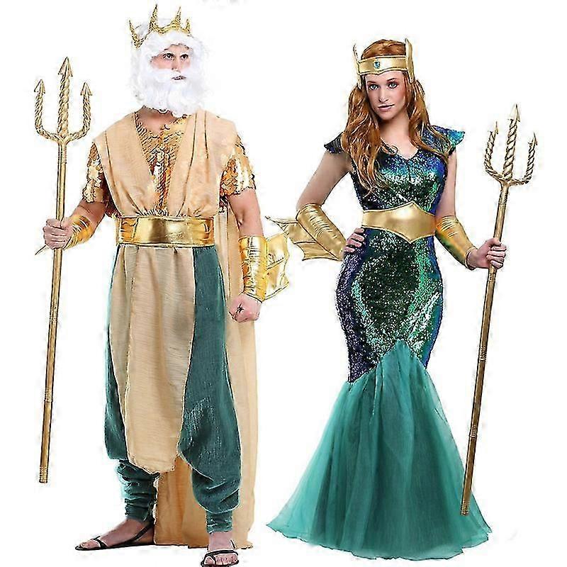 Adult Golden Poseidon Costume Mens, King Neptune Costume Halloween Costume